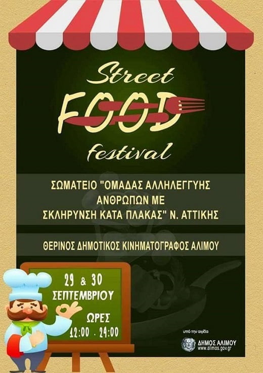 Το τελευταίο Σαββατοκύριακο του Σεπτεμβρίου, από τις 12 το μεσημέρι μέχρι αργά το βράδυ, στην Παραλία του Αλίμου, στο Cine Άλιμος, θα στηθεί μια γιορτή με «γρήγορο φαγητό στο χέρι» (street και ethnic), καλλιτεχνικά δρώμενα, μουσική, κέφι και πολλή αγάπη για τον συνάνθρωπο!