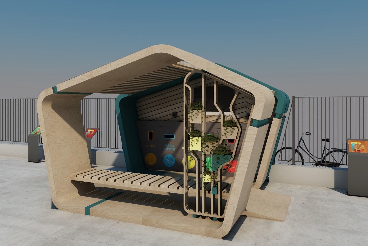 Έξυπνες αυτόνομες γωνιές ανακύκλωσης σε 15 σχολεία και βυθιζόμενοι κάδοι βιοαποβλήτων σε 100 σημεία της Καλλιθέας με παράλληλη αξιοποίηση ανανεώσιμων πηγών ενέργειας.