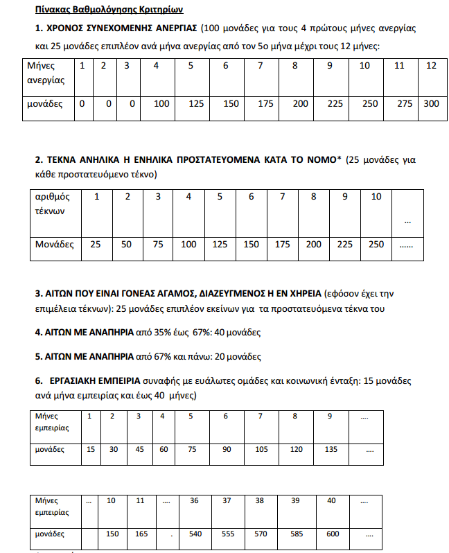- Τα κριτήρια επιλογής και τη μοριοδότηση κάθε κριτηρίου