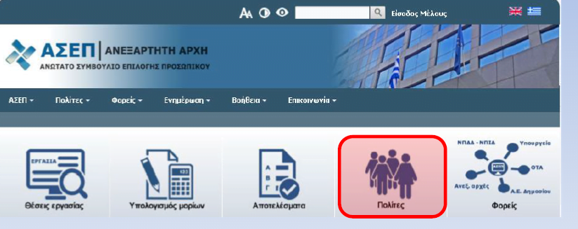 1. Μπείτε στην ηλεκτρονική σελίδα του ΑΣΕΠ (www.asep.gr)