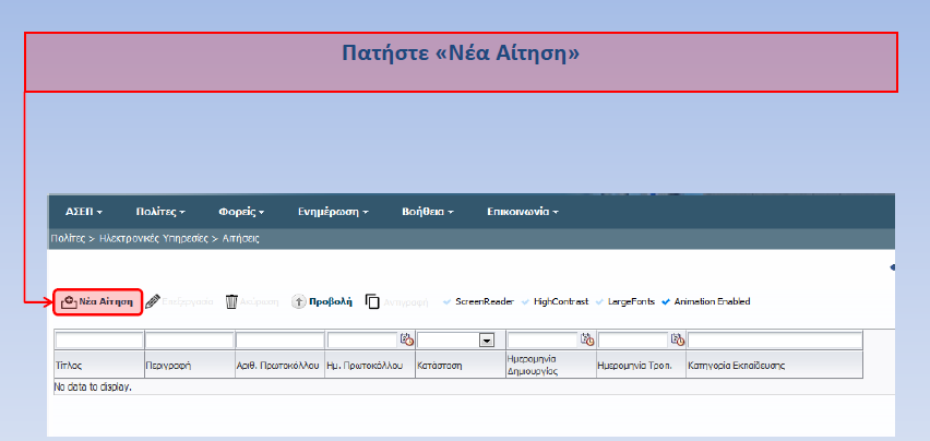 5. Στη συνεχεια πατήστε «Νέα Αιτηση»
