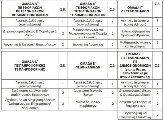 Οι υποψήφιοι θα κληθούν να εξεταστούν σε τρία μαθήματα ή τέσσερα μαθήματα αναλόγως της ειδικότητας για την οποία διαγωνίζονται.