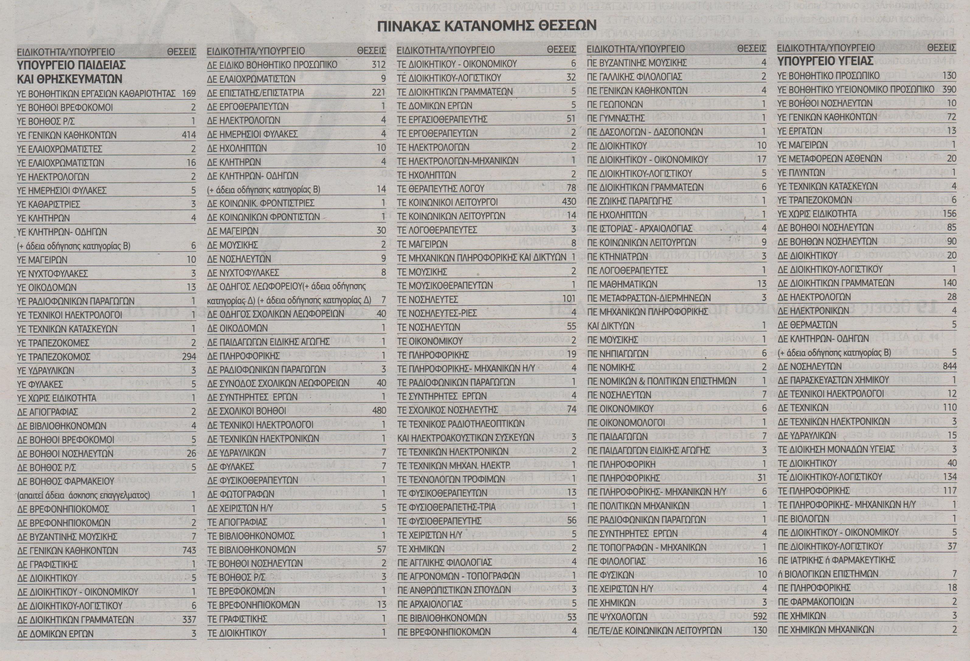 Υπενθυμίζεται ότι, άλλες 6.806 προσλήψεις προγραμματίζονται μέσω της κοινωφελούς εργασίας για τα εξής υπουργεία: