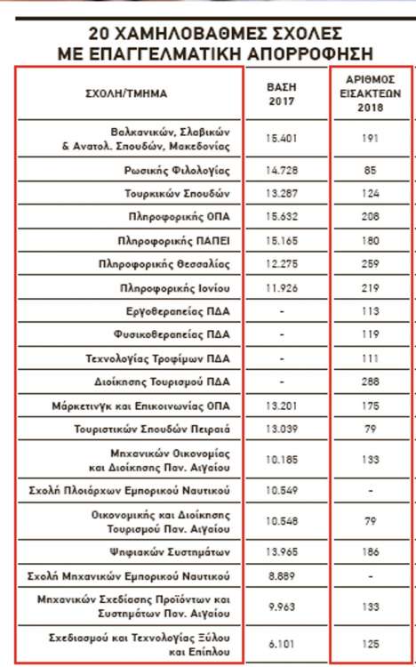 Τα πανεπιστήμια με τουριστικά τμήματα, μάρκετινγκ αλλά και τα ψηφιακά συστήματα αποτελούν εύκολα προσβάσιμες επιλογές με χαμηλό βαθμό εισαγωγής και αρκετά υποσχόμενες προοπτικές.