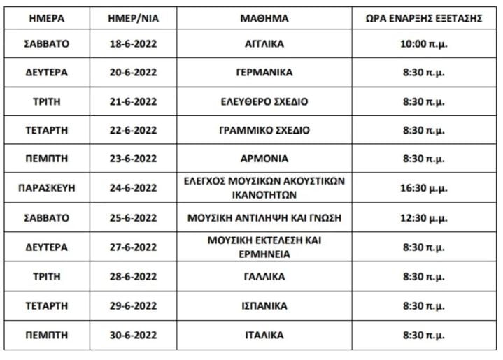 Το προσεχές Σάββατο, 18 Ιουνίου, ξεκινά η εξέταση των Ειδικών και Μουσικών Μαθημάτων με το μάθημα των Αγγλικών. Δείτε αναλυτικά το πρόγραμμα των ειδικών μαθημάτων: