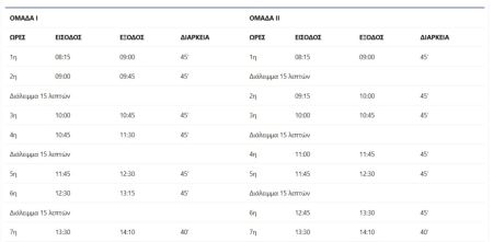 08.15 – 09.00 45′ 1η διδακτική ώρα