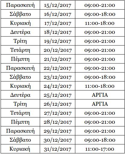 Τα μαγαζιά θα είναι κλειστά στις 25 και 26 Δεκεμβρίου, που είναι αργία, ανήμερα την Πρωτοχρονιά αλλά και στις 2 του μήνα.