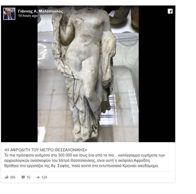 Όπως σχολίασε στο facebook, o κ. Γιάννης Μυλόπουλος, πρόεδρος της Αττικό Μετρο, πρόκειται για “το πιο πρόσφατο ανάμεσα στα 300.000 και ίσως ένα από τα πιο… καλλίγραμμα ευρήματα”.