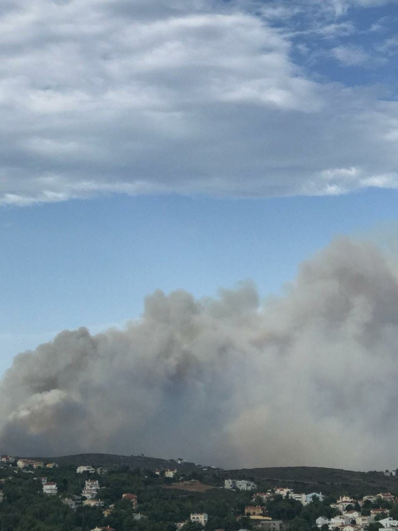 Μεγάλη πυρκαγιά ξέσπασε και στην Καλλιτεχνούπολη Ραφήνας, κοντά στον οικισμό.