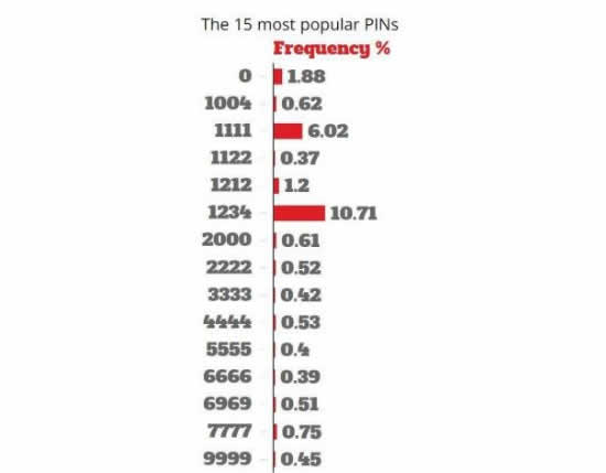 Οι 15 πιο δημοφιλείς κωδικοί που χρησιμοποιούν οι άνθρωποι στις συναλλαγές τους είναι: