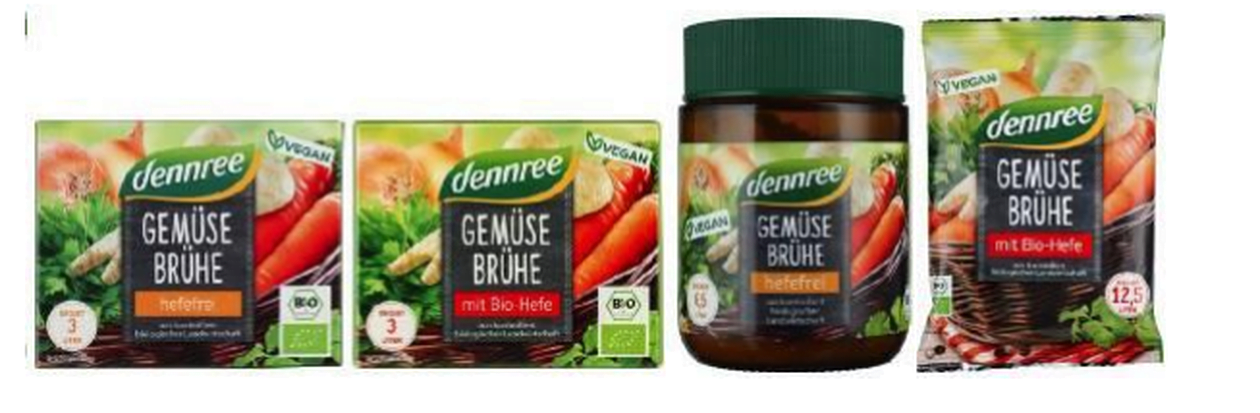 - Μίγμα λαχανικών χωρίς μαγιά με εμπορική ονομασία dennree Gemüsebrühe –hefefrei – σε συσκευασία των 130 g ανά τεμάχιο.