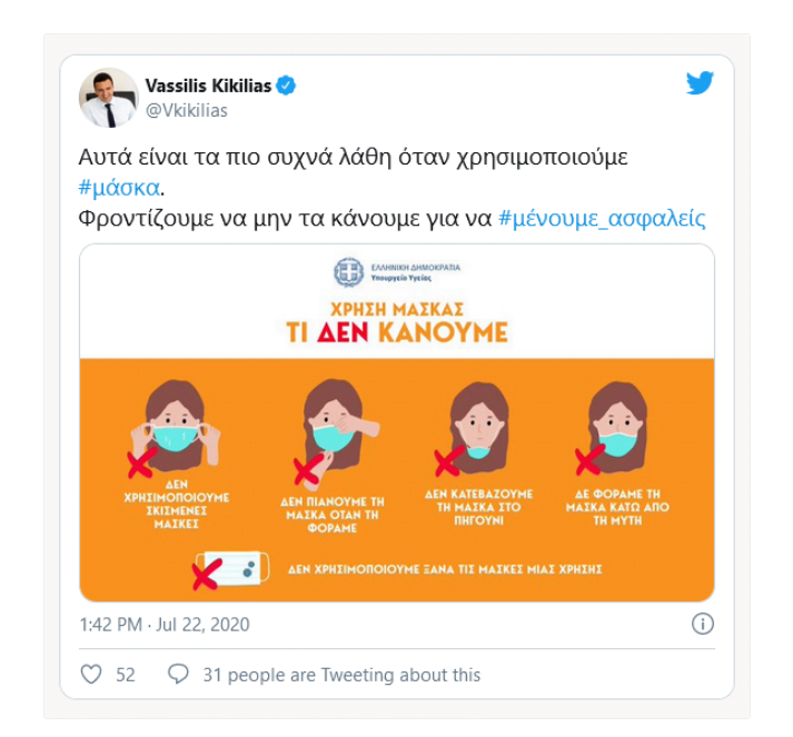 Στην ανάρτησή του στο Twitter ο κ. Κικίλιας, μαζί με το σχέδιο του υπουργείου, συμβουλεύει: