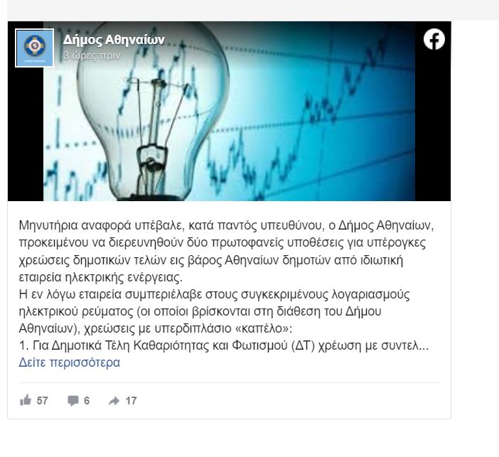 Συγκεκριμένα, σύμφωνα με την ανακοίνωση, ο δήμος Αθηναίων το περασμένο διάστημα έγινε αποδέκτης δύο καταγγελιών από δημότες του, αναφορικά με υπέρογκες χρεώσεις εις βάρος τους από την εταιρεία VOLTON (ΚΕΝ Παραγωγή και Εμπορία Ενεργειακών Προϊόντων Ανώνυμος Εταιρεία VOLTON Group of companies). Η εν λόγω εταιρεία συμπεριέλαβε στους συγκεκριμένους λογαριασμούς ηλεκτρικού ρεύματος (οι οποίοι βρίσκονται στη διάθεση του Δήμου Αθηναίων), χρεώσεις με υπερδιπλάσιο «καπέλο»: