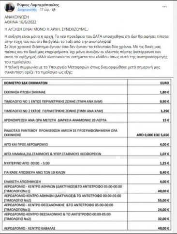 Ωστόσο, με βάση τον νέο τιμοκατάλογο, που ανακοίνωσε στα social media ο ΣΑΤΑ, οι νέες χρεώσεις διαμορφώνονται ως εξής: