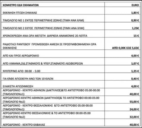 Με βάση την αναπροσαρμογή του κομίστρου, η πτώση της σημαίας θα αυξηθεί στο 1,80 από 1,19 ευρώ, η ελάχιστη αποζημίωση ορίζεται στα 4 ευρώ, ενώ αυξάνεται στα 40 ευρώ η διαδρομή από και προς το αεροδρόμιο «Ελ. Βενιζέλος».