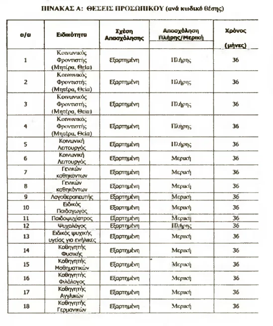 Το Ελληνικό Παιδικό Χωριό στα πλαίσια της Πράξης με τίτλο Οικογενειακή φροντίδα δεκαέξι ιό ανήλικων κακοποιημένων παιδιών και προετοιμασία εκπαίδευση αναδοχών οικογενειών με κωδικό ΟΠΣ MIS 5041652 στο Επιχειρησιακό Πρόγραμμα Κεντρική Μακεδονία 2014-2020 στον ΑΞΟΝΑ ΠΡΟΤΕΡΑΙΟΤΗΤΑΣ ΑΞ09Β Προώθηση της κοινωνικής ένταξης και καταπολέμησης της φτώχειας ο οποίος συγχρηματοδοτείται από το Ευρωπαϊκό Κοινωνικό Ταμείο ΕΚΤ προβαίνει στην πρόσληψη με σύμβαση εργασίας του ακόλουθου προσωπικού: