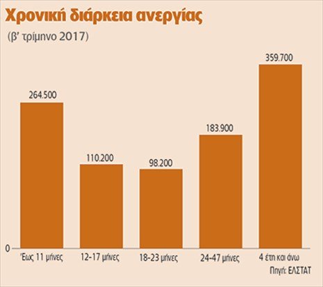 Σε εξαιρετικά υψηλά επίπεδα εξακολουθούν να βρίσκονται τα ποσοστά των μακροχρόνια ανέργων, δηλαδή των ατόμων που είναι εκτός αγοράς εργασίας για περισσότερους από 12 μήνες παρά την αισθητή μείωση που παρουσιάζουν τα συνολικά ποσοστά των ανέργων τα τρία τελευταία χρόνια.