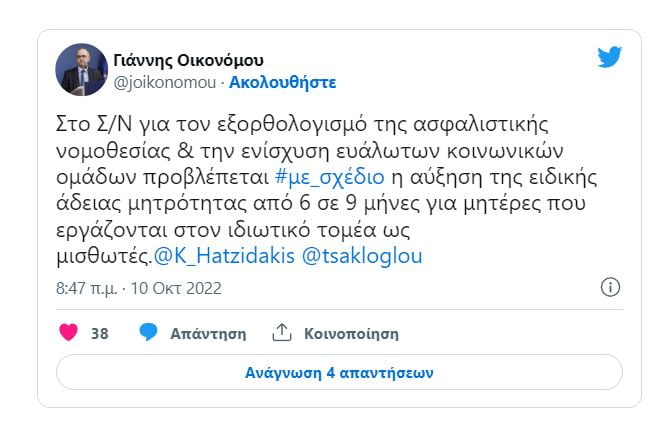 Στο νομοσχέδιο για τον εξορθολογισμό της ασφαλιστικής νομοθεσίας και την ενίσχυση ευάλωτων κοινωνικών ομάδων αναφέρεται με ανάρτησή του στο Twitter ο κυβερνητικός εκπρόσωπος, Γιάννης Οικονόμου.