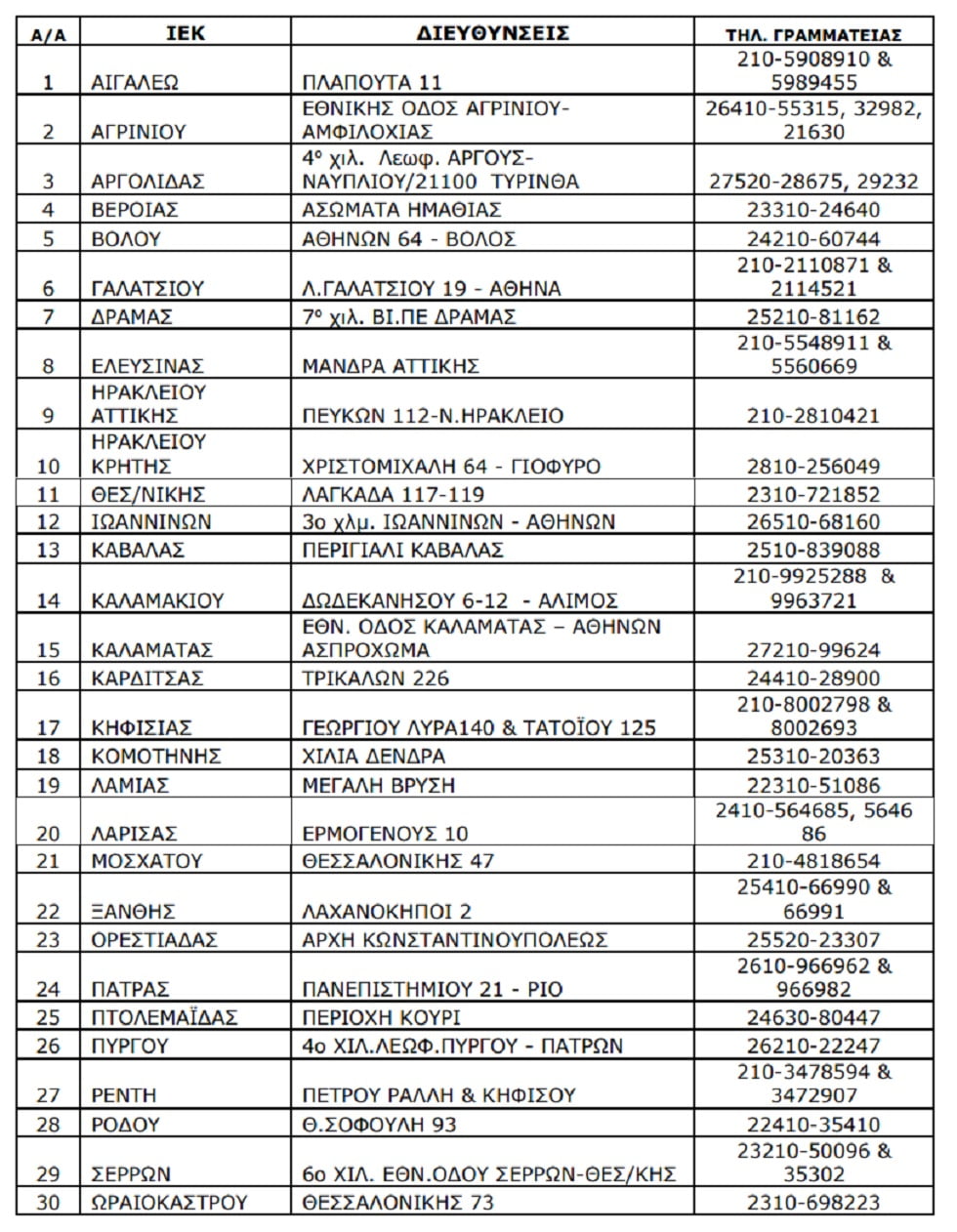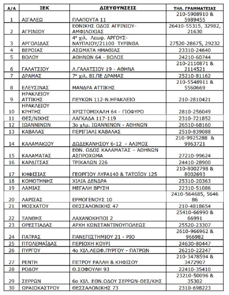 Οι ενδιαφερόμενοι μπορούν να ανατρέχουν για περισσότερες πληροφορίες στην ιστοσελίδα του Ο.Α.Ε.Δ: www.oaed.gr και στις γραμματείες των παρακάτω ΙΕΚ: