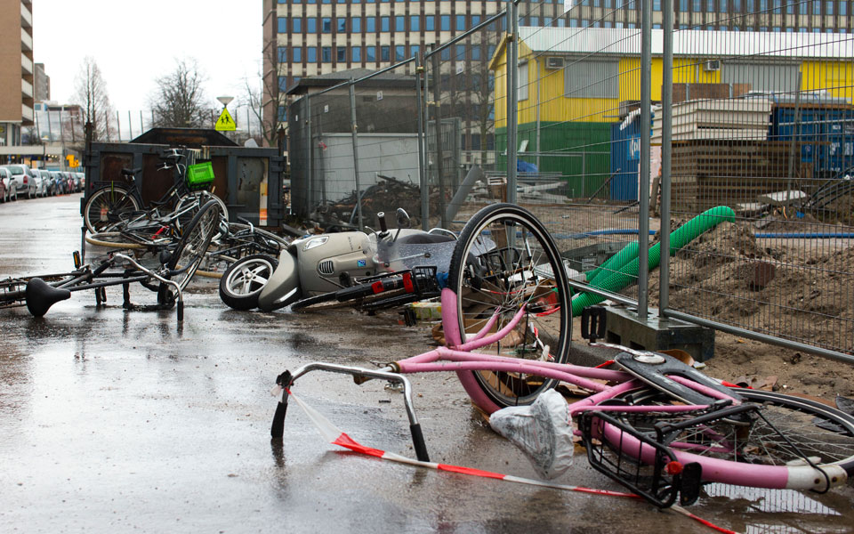 Στο Ρότερνταμ, κοντέινερ ανατράπηκαν και ολόκληρες στέγες ξεριζώθηκαν από σπίτια, σύμφωνα με τηλεοπτικά πλάνα.