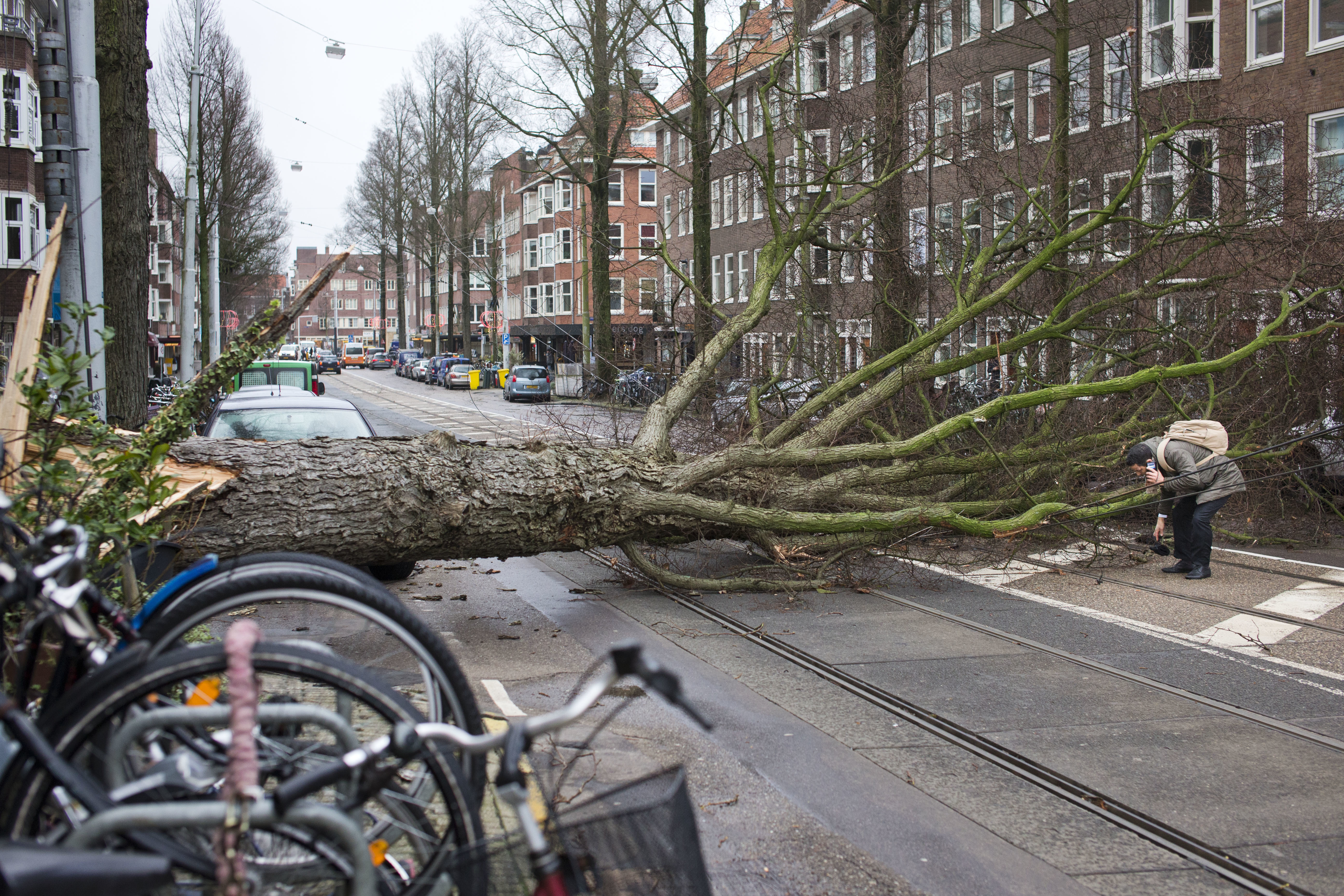 Το αεροδρόμιο Σίπχολ του Άμστερνταμ ανέστειλε για λίγο όλη την αεροπορική κυκλοφορία καθώς οι ριπές των ανέμων έφθαναν ακόμη και τα 140 χλμ. την ώρα κατά μήκος των ακτών.