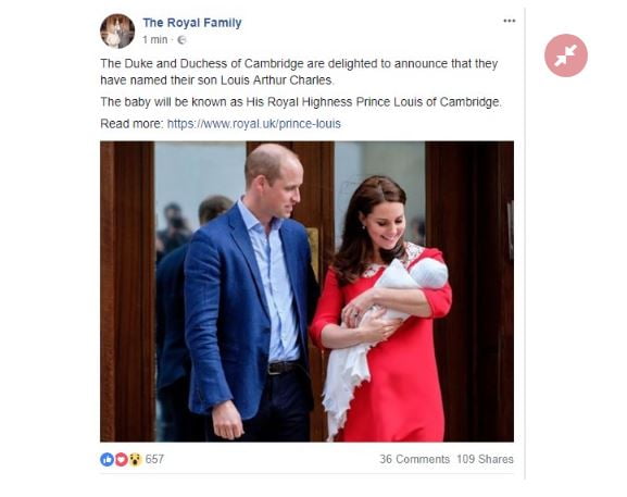 Σύμφωνα με την ανακοίνωση της βασιλικής οικογένειας της Βρετανίας, ο γιός της Κέιτ Μίντλετον και του Πρίγκιπα Ουίλιαμ θα ονομαστεί Louis Arthur Charles.