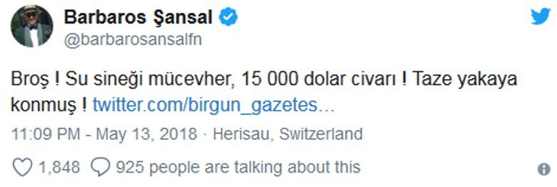 Και σαν να μην έφτανε αυτό, ο τούρκος σχεδιαστής και επικριτής του Ερντογάν, Barbaros Şansal παρατήρησε και την ακριβή καρφίτσα που φορούσε η κυρία Ερντογάν η οποία, όπως λέει, κοστίζει 15.000 δολάρια.