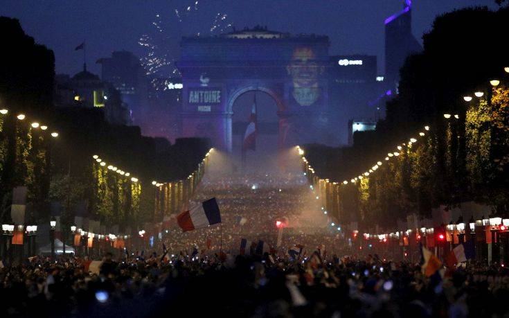 Στους δρόμους βγήκαν το βράδυ εκατοντάδες χιλιάδες Γάλλοι, πανηγυρίζοντας ξέφρενα τη νίκη της εθνικής τους ομάδας και την κατάκτηση του πολύτιμου τροπαίου του Παγκοσμίου Κυπέλλου 2018.