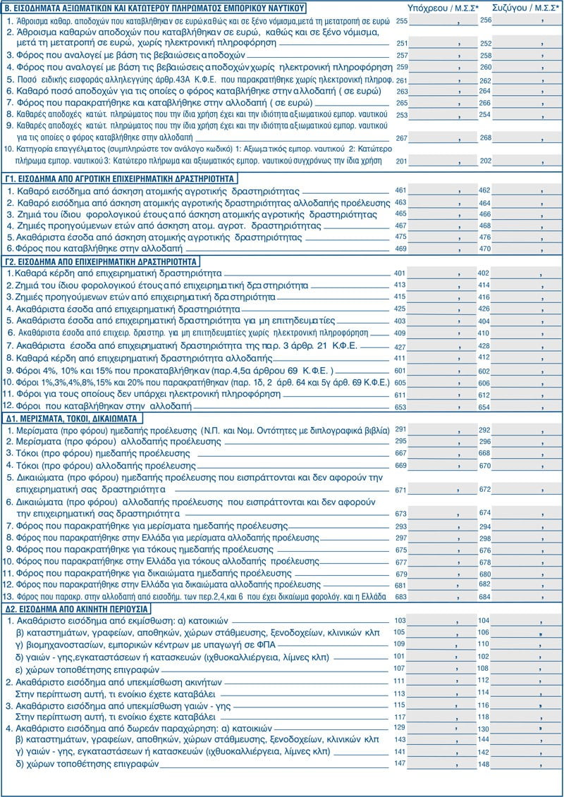 Προστέθηκε νέος κωδικός 320 :συμπληρώνεται στην περίπτωση που η σύζυγος ή το μέρος συμφώνου συμβίωσης είναι φορολογικός κάτοικος αλλοδαπής.