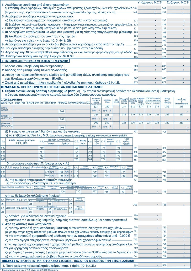 -057 -058: για όσους έχουν χρηματοδοτήσει υποψήφιο για τη Βουλή των Ελλήνων ή του Ευρωπαϊκού Κοινοβουλίου. Στην περίπτωση αυτή, η ιδιωτική χρηματοδότηση μέχρι του ποσού των 5.000 ευρώ εκπίπτει εξ ολοκλήρου από το εισόδημα του φορολογούμενου.
