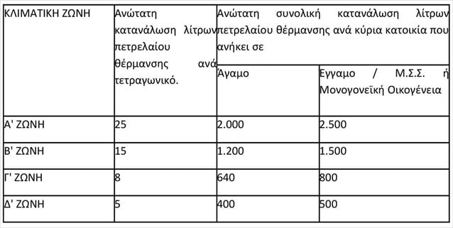 Σημειώνεται ότι όσοι δήμοι χαρακτηρίζονται ως ορεινοί εντάσσονται στην αμέσως ανώτερη κλιματική ζώνη από αυτήν του νομού στον οποίον βρίσκονται.