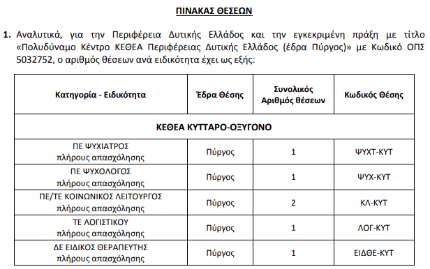 To KEΘΕΑ ζητεί προσωπικό το οποίο θα παρέχει υπηρεσίες με σύμβαση εξαρτημένης εργασίας ιδιωτικού δικαίου ορισμένου χρόνου διάρκειας ενός (1) έτους, με δυνατότητα ανανέωσης.