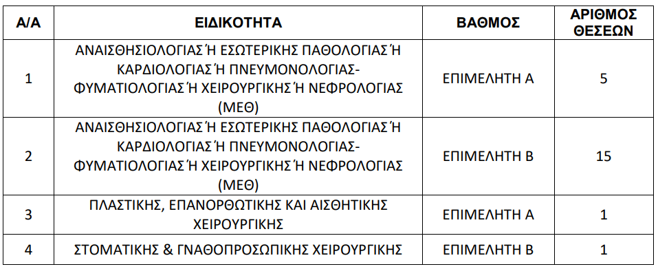 Ο Διοικητής του Γενικού Νοσοκομείου Αττικής ΚΑΤ προκηρύσσει την πλήρωση είκοσι δύο (22) θέσεων ειδικευμένων ιατρών επί θητεία του κλάδου ΕΣΥ στο Γ.Ν. Αττικής ΚΑΤ ως εξής: